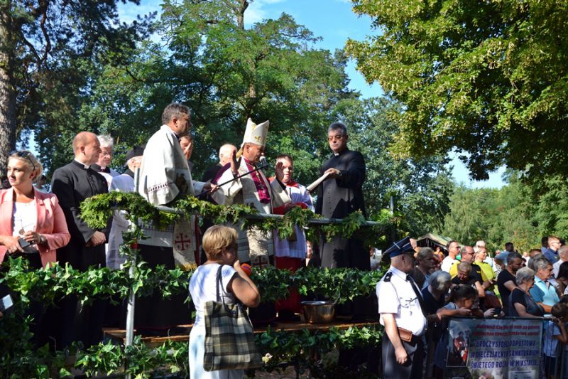 W tym roku dokonał go ks. Bp Radosław Orchowicz. Tradycyjnie już na obrzęd przybyli ze swoimi zwierzątkami nie tylko mikstaccy parafianie, ale pielgrzymi i turyści z najodleglejszych zakątków kraju. Integralną częścią obrzędu błogosławieństwa zwierząt jest modlitwa, która została odczytana przez ks. bpa Radosława Orchowicza. W tej przedziwnej procesji, która przeszła drogą biegnącą tuż przy cmentarzu zobaczyć można było prawie całą Arkę Noego. Były konie, kucyki, krowy (co prawda tylko trzy), cielątka wiezione na przyczepie, świnki morskie, chomiki, małe i duże króliki, psy i koty różnych ras i wielkości, szynszyle, gołębie, gęś, kura i kaczka niesione przez swych właścicieli, papugi, a nawet, szynszyle i wiele innych zwierząt. Pojawiły się na obrzędzie błogosławieństwa alpaki. Po raz pierwszy byli także sokolnicy ze swoimi ptakami. Wszystkich zwierząt i ptactwa, które trafiło pod kropidło ks. Biskupa nie sposób wymienić. Zgodnie z tradycją obrzęd błogosławieństwa zwierząt zakończyło wypuszczenie prze ks. Biskup i ks. kustosza białych gołębi, które symbolizują pokój, ale także Ducha Świętego. Wraz ze wzlatującymi w górę gołębiami z Mikstackiego Wzgórza popłynęło wołanie o pokój w Ukrainie. Obrzęd błogosławieństwa jest bardzo widowiskowy, ma co trzeba podkreślić głęboką wymowę religijna. Święty Roch jest opiekunem zwierząt domowych, stąd w dniu jego wspomnienia w Mikstacie przyprowadza się zwierzęta, by zostały pobłogosławione.