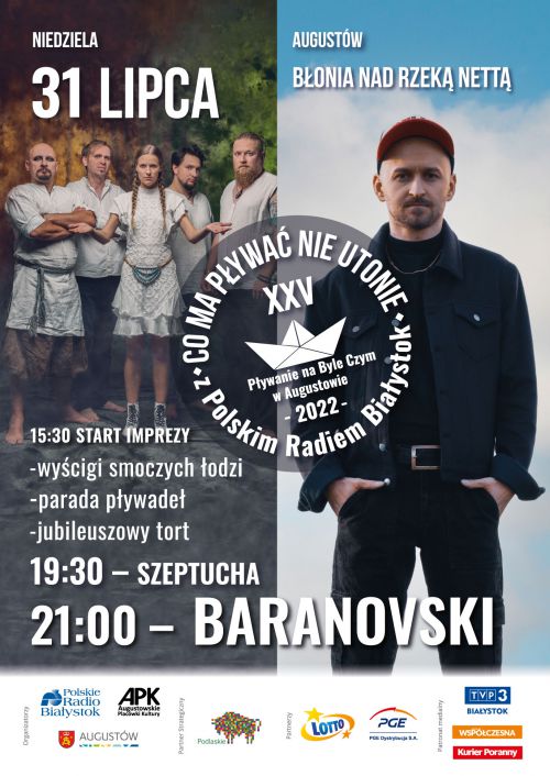 Augustowskie Placówki Kultury zapraszają na najbardziej widowiskową letnią imprezę na Błoniach nad Nettą. W niedzielę 31 lipca 2022 wystartuje XXV, jubileuszowa edycja Mistrzostw Polski w Augustowie w Pływaniu Na Byle Czym z Polskim Radiem Białystok.