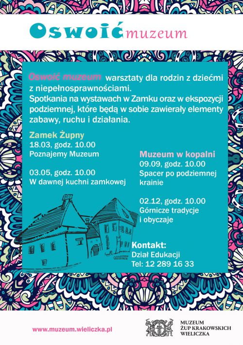 Muzeum Żup Krakowskich Wieliczka zaprasza rodziny z dziećmi z niepełnosprawnościami do udziału w warsztatach z nowego cyklu "Oswoić Muzeum". Pierwsze spotkanie pt. "Poznajemy Muzeum" już 18 marca 2023 r. o godz. 10.00 w Zamku Żupnym w Wieliczce.