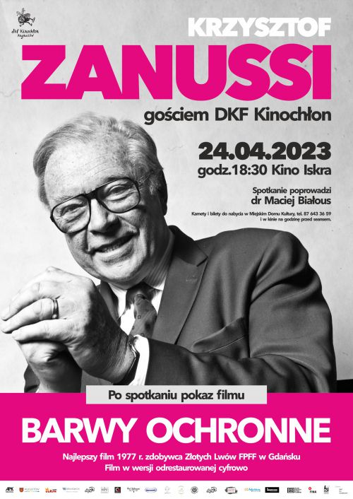 Augustowski DKF Kinochłon zaprasza 24 kwietnia 2023 o godz. 18:30 do kina „Iskra” na spotkanie z Krzysztofem Zanussim. Będzie to wieczór niezwykły nie tylko ze względu na gościa! Ale o tym za chwilę…