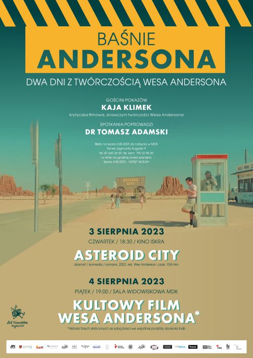 Gośćmi tego dwudniowego wydarzenia będą: Kaja Klimek – filmoznawczyni, wielbicielka filmów Wesa Andersona, krytyczka filmowa i popkulturowa, edukatorka oraz stała gościni KINOCHŁONA. Partnerować w rozmowie będzie jej, również dobrze znany naszej widowni, Tomasz Adamski – filmoznawca z Uniwersytetu w Białymstoku na wydziale Pedagogiki i Psychologii w Zakładzie Kulturoznawstwa.