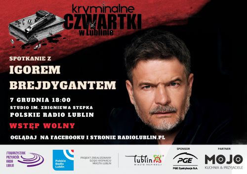 7 grudnia, godz. 18.00, Studio im. Budki Suflera Radia Lublin, Kryminalne czwartki w Lublinie – spotkanie z Igorem Brejdygantem, prowadzenie Agata Koss-Dybała
