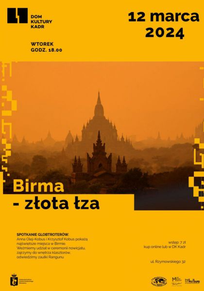 To miał być raj. Oczekiwano, iż wyzwolona z kolonializmu Birma stanie się krajem dostatnim, szczęśliwym i niepowtarzalnym. Po ponad 50 latach wojskowych rządów osiągnięto to ostanie: to kraj niepodobny do innych. W turystycznych folderach jest opisywana jako kraj tysięcy złotych pagód, nietknięty przez współczesną cywilizację. Tu kobiety wciąż malują twarze thanaką, a nim staniesz się mężczyzną – musisz zostać mnichem, bo gdy wieją wichry historii, wierność tradycji staje się busolą w życiu. Podczas pokazu wyruszymy do najświętszych miejsc, weźmiemy udział w ceremonii nowicjatu, zajrzymy do wnętrza klasztorów i poznamy codzienne życie zwykłych ludzi. Popłyniemy jeziorem Inle, odwiedzimy zaułki Rangunu, zaś kobiety Padaung opowiedzą nam, dlaczego kontynuują niezwykłą tradycję wydłużania szyi.