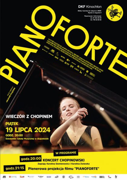 Augustowski DKF KINOCHŁON zaprasza na wieczór wypełniony… muzyką Chopina! W piątek 19 lipca 2024 o godz. 20:00 na dziedzińcu Państwowej Szkoły Muzycznej w Augustowie (ul. Wybickiego 1) najpierw wysłuchamy Koncertu Chopinowskiego, a potem wyświetlimy film „Pianoforte” Jakuba Piątka.