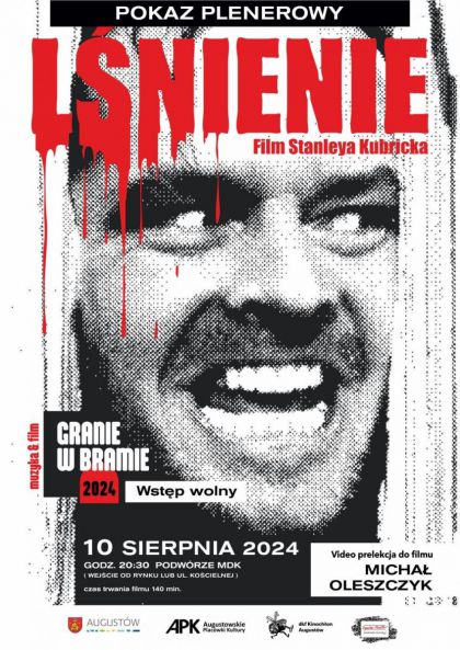 Augustowskie Placówki Kultury i DKF KINOCHŁON zapraszają w sobotę 10 sierpnia 2024 r. na podwórze Miejskiego Domu Kultury (Rynek Zygmunta Augusta 9), gdzie o godz. 20:30 obejrzymy „Lśnienie”, arcydzieło filmu grozy w reżyserii Stanley'a Kubricka. Jack (w tej roli Jack Nicholson) przyjmuje posadę zimowego stróża w odciętym od świata eleganckim hotelu Overlook, dokąd przenosi się z żoną (Shelley Duvall) i synem (Danny Lloyd). Jack nigdy tam nie był - a może jest inaczej? Przekonajcie się razem z nami, jeśli nie widzieliście tego filmu. A jeżeli znacie go dobrze, sprawdźcie, jak ogląda się go z naszego leżaczka.