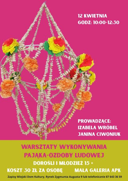 | Warsztaty wykonywania pająków-ozdób ludowych dla dorosłych i młodzieży 15+ |