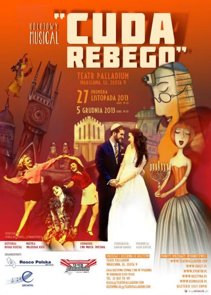 W musicalu "Cuda Rebego" zobaczymy gwiazdy śląskich scen teatralnych. Producentem spektaklu jest businessman, właściciel grupy Rosco Polska, wiceprezes firmy Euro Artpol (współprodukcja spektaklu) - Alois Rostek. Ewa Warta - Śmietana w swoim scenariuszu w dowcipny i kolorowy sposób "opowiada" dzieje żydowskiego środowiska z małego miasteczka. Zobaczymy musical wypełniony humorem, nie pozbawiony również wątków lirycznych i głębszych emocji, poprzez które poprowadzi nas piękna żydowska muzyka. "Cuda Rebego" to żydowska historia i obyczajowość w pigułce. Akcja rozgrywa się na początku XX wieku, w kurorcie Ciechocinek, oraz małym miasteczku Brody. Spektakl pełen jest zaskakujących zwrotów akcji "cudów" Rabina - popisów iluzjonistycznych w wykonaniu iluzjonisty Konrada Mościńskiego. Całość osadzona jest w ciekawej, funkcjonalnej scenografii, w której elementy sceniczne dopełnione są zwracającymi uwagę kostiumami, grą świateł, a także pełnymi temperamentu układami tanecznymi ułożonymi przez znaną śląskiej publiczności tancerkę, choreografkę Sylwię Hefczyńska. Perypetie rodziny Pipmanów z wdziękiem i lekkością przedstawiają jedni z najlepszych aktorów śląskich scen teatralnych Maria Meyer, Marta Tadla, Jolanta Niestrój - Malisz, Antoni Gryzik, Jerzy Głybin, towarzyszą im młodzi, utalentowani artyści będący na początku swojej ścieżki zawodowej, a także dzieci.