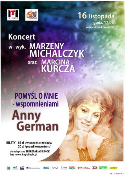 Anna German, od 1972 r. Anna Wiktoria German-Tucholska to polska piosenkarka i kompozytorka, aktorka, z wykształcenia geolog. Śpiewała w siedmiu językach. Laureatka festiwali m.in. w Monte Carlo, Wiesbaden, Bratysławie, San Remo, Neapolu, Viareggio, Cannes, Ostendzie, Sopocie, Opolu, Kołobrzegu, Zielonej Górze. Dwukrotnie uznana za najpopularniejszą polską piosenkarkę wśród Polonii amerykańskiej. Zdobywczyni złotej płyty za longplay Człowieczy los. Występowała w Stanach Zjednoczonych, Kanadzie, Wielkiej Brytanii, Australii, Francji, Portugalii, Włoszech, na Węgrzech, w Mongolii, NRD, RFN, CSRS oraz ZSRR. Wydała płyty w języku polskim, rosyjskim i włoskim.