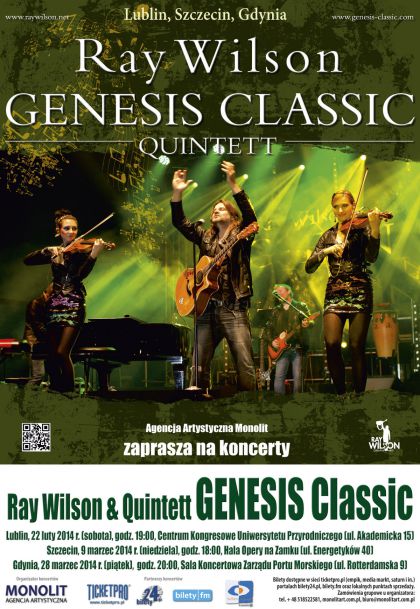 Ray Wilson & Quartet GENESIS Classic wystąpi w Gdyni, 28 marca 2014 r. (piątek), w Sali Koncertowej Zarządu Portu Morskiego (ul. Rotterdamska 9) o godz. 20:00.