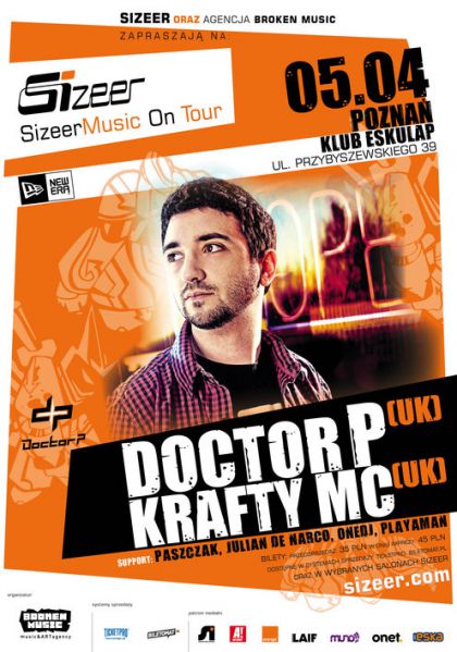 w weekendowe wieczory, gdy ulice i kluby zaczynają tętnić imprezowym pulsem. Występ Doctora P w towarzystwie mistrza mikrofonu, znanego jako Krafty MC w poznańskim Eskulapie, będzie pierwszą imprezą rozpoczynającą wiosenny cykl Sizeer Music On Tour. Kolejni artyści i przystanki klubowej trasy, to Dirtyphonics w Warszawie i Wrocławiu oraz Foreign Beggars w Krakowie i Berlinie.