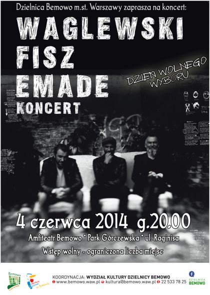 Z okazji 25. rocznicy pierwszych wolnych wyborów Bemowo zaprasza na koncert Waglewskiego, Fisza i Emade