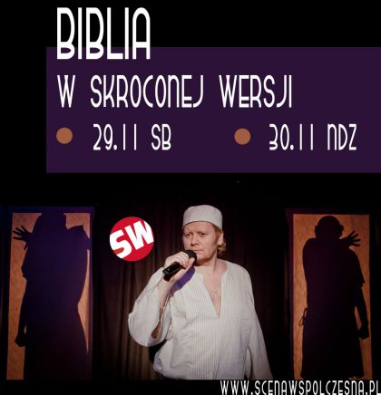 „Biblia w skróconej wersji” to drugie przedstawienie z cyklu, które wraz ze spektaklami „Dzieła wszystkie Szekspira” i „Historia świata w skróconej wersji” tworzy rozrywkowo-edukacyjny tryptyk dla widza w każdym wieku.
