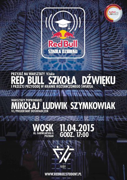 Red Bull Szkoła Dźwięku to seria bezpłatnych warsztatów muzycznych, w których może wziąć udział każdy miłośnik artystycznych wrażeń. Poznańska edycja warsztatów poświęcona będzie sztuce VJ-ingu – prowadzący warsztat wyjaśni, jak przy pomocy profesjonalnego oprogramowania można w prosty sposób zrealizować reagującą na muzykę oprawę wizualną – VJ set. Zgromadzeni dowiedzą się jak proste efekty mogą połączyć obrazy, by nadać zdarzeniu szczególny wygląd i zamienić je w multisensoryczne widowisko.