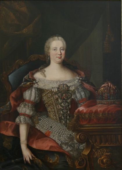 podpis pod fotografię: Cesarzowa Maria Teresa, XVIII w., depozyt Muzeum Miejskiego Suchej Beskidzkiej z kolekcji Ireneusza Seneckiego