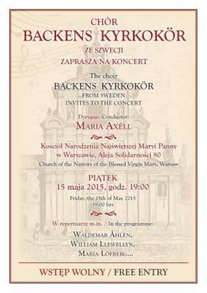 Szwedzki chór Backens Kyrkokör w Kościele Narodzenia Najświętszej Maryi Panny w Warszawie