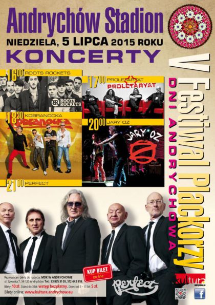 Drugiego dnia Festiwalu (Stadion Miejski) fanów rockowego brzmienia czeka nie lada gratka – podczas JUBILEUSZOWYCH KONCERTÓW wystąpią następujące zespoły: ZESPÓŁ PERFECT, który obchodzić będzie wyjątkowy jubileusz 35-lecia istnienia, KOBRANOCKA zagra w 30. rocznicę pierwszego występu, również zespoły PROLETARYAT oraz JARY OZ będą świętować swoje jubileusze. Planowane Koncerty wzbudzają ogromne emocje i zainteresowanie osób z całego kraju oraz mediów, promując Gminę Andrychów. Honorowy Patronat nad wydarzeniem objął Burmistrz Andrychowa – Tomasz Żak.