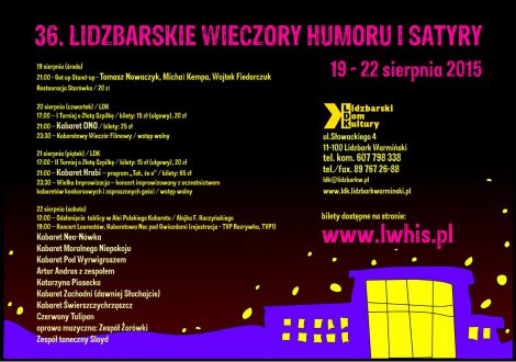 Trzydzieste szóste Lidzbarskie Wieczory Humoru i Satyry, Kabaret Moralnego Niepokoju, Kabaret Neonówka, Kabaret Pod Wyrwigroszem, Artur Andrus, Kabaret Hrabi, kabaret Dno i nie tylko