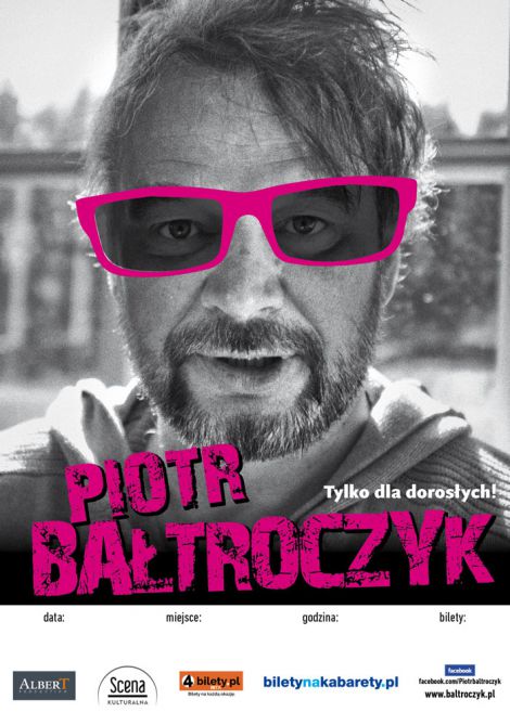 O Piotrze Bałtroczyku: Urodzony jakiś czas temu, co zaczyna być widoczne, choć nie natarczywie. Wiele lat temu Bałtroczyk był poetą lirycznym, piszącym wiersze o tym, że życie smutne jest raczej, a świat nie jest dobrze skonstruowany. Otrzymywał wówczas Bałtroczyk nagrody za swą twórczość: dyplomy wieszał gdzie bądź, nagrody finansowe beztrosko trwonił. Potem - zazdroszcząc kolegom powodzenia u płci - stał się Bałtroczyk tzw. Poetą-pieśniarzem. Nie była to twórczość łatwa dla publiczności. Bałtroczyk jest twórcą tzw. Pętli śmierci, znanej też jako "Obieg Bałtroczyka"; są to akordy a-moll, C-dur, E-dur wykonywane długo, monotonnie i nad wyraz jednostajnie. Szczątkowe powodzenie nie trwało długo i Bałtroczyk poszedł w naukę. Uczył studentów przedmiotów o nazwach długich i niejasnych. Odmówił pisania pracy doktorskiej, więc musiał przestać uczyć. Studenci ciesząc się rozpalili ognisko i pili alkohole. Stał się Bałtroczyk konferansjerem, zapowiadaczem tych, którzy nauczyli się tego, czego on nauczyć się nie mógł. Nie do końca wiadomo, czemu mu się powiodło, ale to fakt. Prowadził i prowadzi niemal wszystko, w tym samochody i motocykle. Wystąpił w kilkuset programach telewizyjnych jako prowadzący lub wykonawca. Prowadził setki imprez estradowych i łatwiej wymienia te, których nie prowadził, niż odwrotnie.Naprawdę jest Bałtroczyk osobnikiem depresyjnym i monotematycznym (dzieci, samochody, motocykle). W pracy nie pije, poza pracą z przyjemnością. Ma dwa garnitury, jeden elegancki, a drugi garnitur.