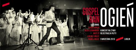 Już 9 września 2015 odbędzie się premierowy koncert GOSPEL RAIN, połączony z rejestracją płyty live „OGIEŃ”. Ten jedyny, wyjątkowy koncert odbędzie się w Centrum Kongresowym Uniwersytetu Przyrodniczego w Lublinie o godz. 20.00.