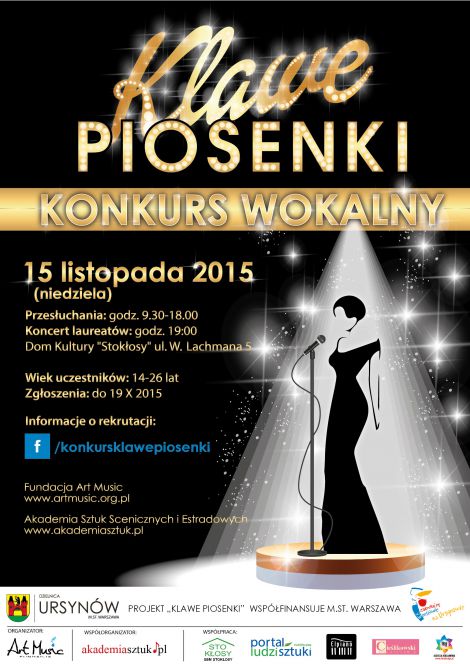 Fundacja ArtMusic i Akademia Sztuk Scenicznych i Estradowych zapraszają wokalistów w wieku 14-26 lat do wzięcia udziału w I edycji konkursu wokalnego "Klawe piosenki".