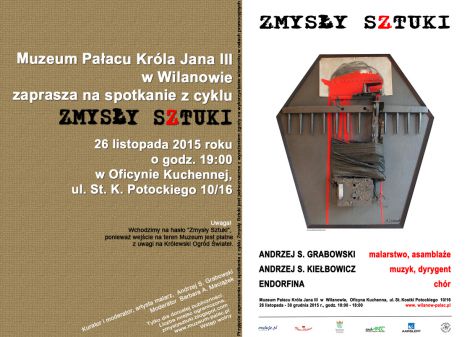 26 listopada 2015 roku, na jubileuszowym 35. spotkaniu z cyklu „Zmysły Sztuki” w Muzeum Pałacu Króla Jana III w Wilanowie, naszymi gośćmi będą Andrzej S. Grabowski, który zajmuje się malarstwem sztalugowym, ściennym, scenografią, fotografią, filmem artystycznym, grafiką komputerową i edukacją artystyczną, kurator i pomysłodawca wielu wydarzeń artystycznych, Andrzej Sławomir Kiełbowicz – muzyk, dyrygent, jeden z nielicznych w Polsce wirtuozów gry na pile, oraz chór kameralny Endorfina.