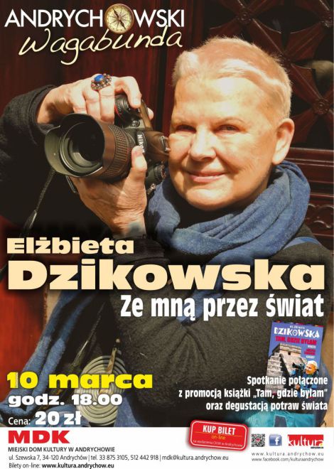 Centrum Kultury i Wypoczynku w Andrychowie serdecznie zaprasza na marcowe spotkanie z cyklu Andrychowski Wagabunda z Elżbietą Dzikowską.