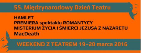27 marca 2016 r. obchodzić będziemy 55.Międzynarodowy Dzień Teatru. Z tej okazji Miejski Dom Kultury zaprasza na „Weekend z teatrem”, który rozpocznie się 18 marca a zakończy 20 marca.