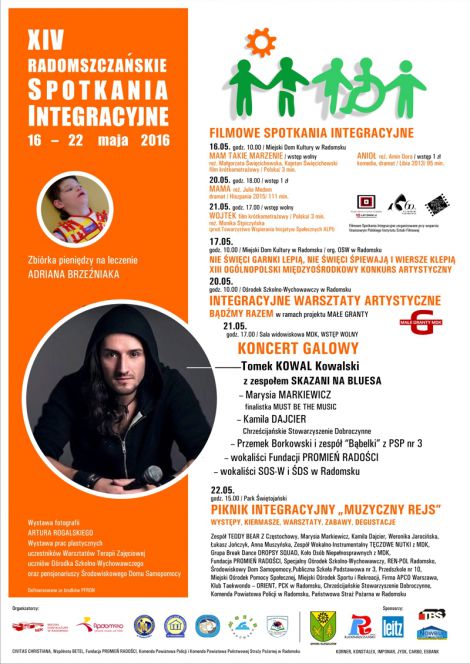 Gwiazda koncertu - Tomek KOWAL Kowalski z zespołem "Skazani na bluesa". Ponadto podczas koncertu zaśpiewa Marysia Markiewicz (finalistka Must Be The Music), Kamila Dajcier (Chrześcijańskie Stowarzyszenie Dobroczynne), Przemek Borkowski i zespół "Bąbelki" z PSP nr 3, wokaliści Fundacji Promień Radości, wokaliści SOSW i ŚDS w Radomsku