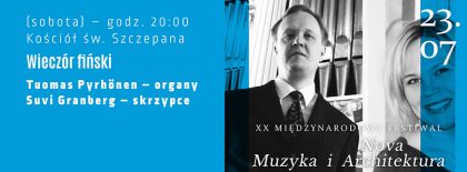Kościół św. Szczepana poszczycić się może znakomitą akustyką, dlatego po raz kolejny zagości tu festiwalowy koncert. W wykonaniu jednego z najbardziej aktywnych koncertujących organistów w Finladii, Tuomasa Pyrhönena usłyszymy repertuar kompozytorów okresu baroku. To właśnie dzięki utworom komponowanym w tej epoce organy zyskały na sławie. Wraz z nastaniem epoki basso continuo na tym instrumencie najsprawniej realizowano bas cyfrowany w utworach wokalno-instrumentalnych. Organy zaczęto budować w fantazyjne formy architektoniczne, nierzadko nawet w formie wielu szaf. Organiście towarzyszyć będzie także skrzypaczka Suvi Granberg. Artystka jest związana z Kymi Sinfonietta, będącą orkiestrą miast: Kotka i Kouvola w południowej części Finlandii.