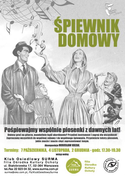 Zapraszamy wszystkich do wspólnej zabawy i do wspólnego śpiewania. Przynieście teksty piosenek, jakie znacie i macie chęć zaprezentować innym. Stworzymy z nich Wasz własny śpiewnik.