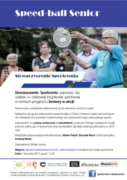 Stowarzyszenie SPORTOWNIA organizuje warsztaty rekreacyjne z dyscypliny speed-ball. Spotkanie skierowane jest do seniorów wraz z rodzinami. Szczególnie dla seniorów z wnukami, ponieważ speed-ball to rodzinny sport.