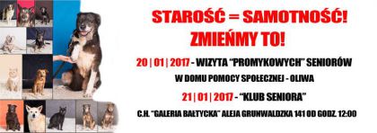 Komercyjne centrum ma szansę na kilka godzin zamienić się w tętniący życiem zwierzyniec. Do dyspozycji zwierzaków i ich opiekunów przeznaczono miejsce na poziomie -1 Galerii. W specjalnie ogrodzonej przestrzeni będzie można poznać kilku podopiecznych schroniska i przekonać się, jak radosne i pełne energii potrafią być starsze psy i koty. Dzień Babci i Dziadka, który tradycyjnie przypada w styczniu, jest znakomitą okazją, by zachęcić gdańszczan do zwrócenia uwagi na starsze zwierzęta i przekonać ich, że adopcja „dojrzałego” psa czy kota, to nie tylko ryzyko i kłopot, ale przede wszystkim szansa na dozgonną wdzięczność najwierniejszego przyjaciela. Takiego jak choćby Buła, który od wielu lat czeka na swoją szansę. „Może ktoś w końcu wypatrzy go sercem” – mówi wolontariuszka Julita Fiszbach – „to tak bardzo przyjacielski, uwielbiający aportowanie, rozdający pieszczoty i buziaki pies...”.