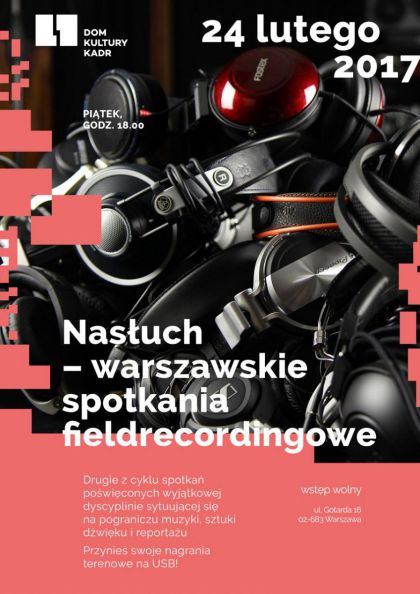 Drugie z cyklu spotkań poświęconych wyjątkowej dyscyplinie sytuującej się na pograniczu muzyki, sztuki dźwięku i reportażu. W ramach otwartego przeglądu nagrań terenowych autorstwa warszawskich artystów zajmujących się field recordingiem każda z osób będzie miała 10 minut na odtworzenie nagrania i krótkie wprowadzenie publiczności w okoliczności jego powstania.