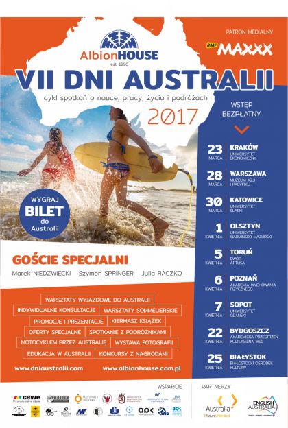 Organizatorami wydarzenia są Paweł Wida i Karolina Sypniewska-Wida, którzy mieszkają w Sydney i zarażają pasją i miłością do Australii. Od ponad 20 lat prowadzą firmę Albion House, która spełnia marzenia o wyjazdach edukacyjnych do Australii i nie tylko!