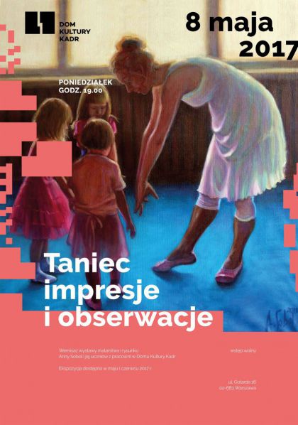 Najnowsza wystawa malarstwa Anny Sobol i jej uczniów z Kursu Malarstwa i Retro-Akademii w Domu Kultury Kadr, prezentująca szerokie spektrum wariacji na temat tańca klasycznego i nowoczesnego, ludowego i towarzyskiego, polskiego i egzotycznego – zorganizowana z okazji Międzynarodowego Dnia Tańca.