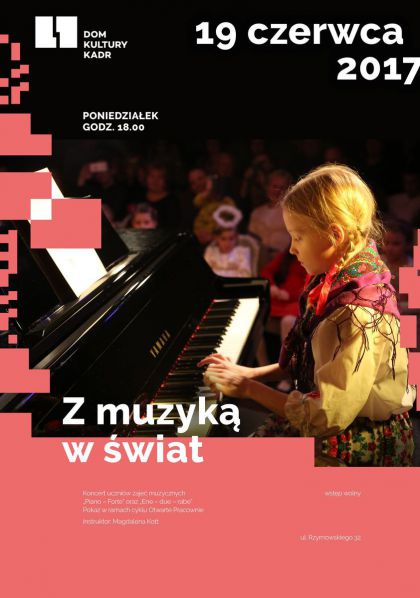 Z muzyką w świat – koncert uczniów zajęć muzycznych pracowni „Piano – Forte” oraz „Ene – due – rabe”, które prowadzi instruktorka Magdalena Kott. Pokaz w ramach cyklu Otwarte Pracownie.