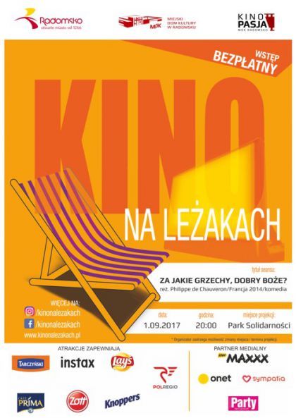 Na zakończenie wakacji Kino Pasja zaprasza 1 września o godz. 20.00 do Parku Solidarności na komedię "Za jakie grzechy, dobry Boże?" w ramach spotkania filmowego "Kino na leżakach". "Za jakie grzechy, dobry Boże" to największy francuski przebój 2014 roku: 12 milionów widzów nad Sekwaną i kolejne miliony w reszcie Europy, sale kinowe pękające w szwach i zanoszące się śmiechem. O co chodzi? O cztery piękne córki na wydaniu i jedno marzenie ich poukładanych, konserwatywnych rodziców – żeby dobrze wyszły za mąż. Ale co zrobić, gdy czterech zakochanych mężczyzn to Żyd, Arab, Chińczyk i wesoły chłopak z serca Czarnej Afryki? Każdy z nich pochodzi z innej kultury, ma swoje obyczaje, wierzenia, religię. Jak nie zwariować, próbując wszystkich pogodzić ze sobą? Czy to wszystko może skończyć się na ślubnym kobiercu, czy raczej wywoła totalną wojnę domową? O co chodzi? O cztery piękne córki na wydaniu i jedno marzenie ich poukładanych, konserwatywnych rodziców - żeby dobrze wyszły za mąż. Ale co zrobić, gdy czterech zakochanych mężczyzn to Żyd, Arab, Chińczyk i wesoły chłopak z serca Czarnej Afryki? Każdy z nich pochodzi z innej kultury, ma swoje obyczaje, wierzenia, religię. Jak nie zwariować, próbując wszystkich pogodzić ze sobą? Czy to wszystko może skończyć się na ślubnym kobiercu, czy raczej wywoła totalną wojnę domową?