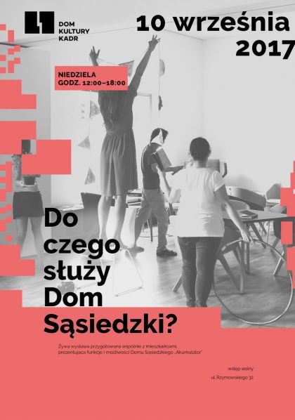 W Domu Kultury KADR działać będzie Dom Sąsiedzki Akumulator, czyli przestrzeń, w której to okoliczni mieszkańcy decydują o wszystkim. Co będzie można tu robić? Jak wykorzystać to miejsce? Tego wszystkiego dowiecie się już 10 września podczas żywej wystawy przygotowanej przez gospodarzy, sąsiadów i wolontariuszy Akumulatora.