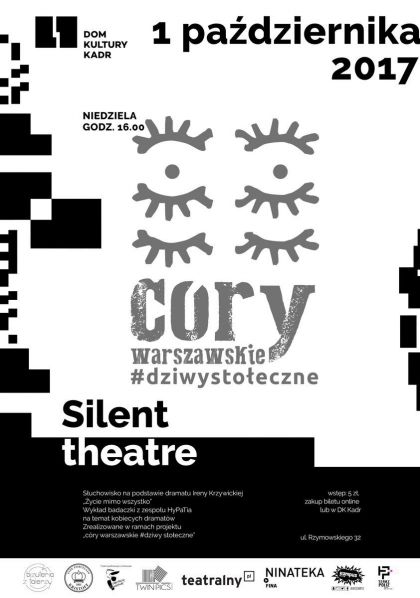 „córy warszawskie #dziwystołeczne” to słuchowiska, spektakle, wykłady i warsztaty. Celem projektu jest przybliżenie widzom zapomnianej lub nieodkrytej sztuki kobiecej oraz teatru niezależnego. Dzięki słuchowiskom powstałym na podstawie tekstów polskich autorek pierwszej połowy XX wieku TERAZ POLIŻ odkryje przed słuchaczami nieznany rozdział historii polskiej literatury. Pięciu premierom, realizowanym w nowatorskiej formie „silent theatre”, towarzyszyć będą wykłady badaczek z zespołu HyPaTia – Kobieca Historia Teatru Polskiego.