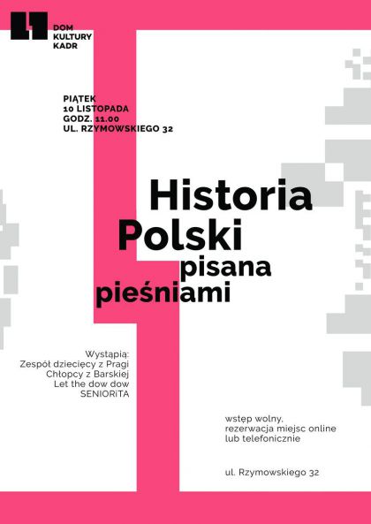 Zapraszamy na powtórkę z burzliwej historii Polski tym razem przedstawionej za pomocą pieśni patriotycznych. Można będzie usłyszeć pieśni, śpiewane przez Polaków w najważniejszych, a nieraz najtrudniejszych dla naszego kraju chwilach.