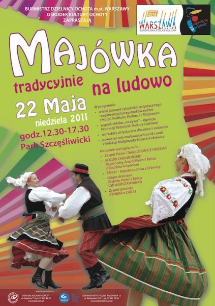 Centrum Artystyczne Radomska 13 zaprasza na kolejną majówkę na ludowo wszystkich, którzy chcą spędzić czas aktywnie, poznać, spróbować i nauczyć się czegoś nowego. Podczas Wielkiej Majówki na ludowo, odbywającej się na Ochocie, będzie można spotkać przedstawicieli różnych regionów etnograficznych Polski. Zobaczymy tradycyjne tańce, śpiewy, spróbujemy regionalnych potraw, zapoznamy się z regionalnymi wyrobami. Program imprezy zawiera atrakcje takie, jak: wielki jarmark rękodzieła artystycznego i regionalnych przysmaków z Podhala, Kurpi, Polesia i Mazowsza, warsztaty artystyczne dla dzieci i rodziców (nawiązujące tematem do zwyczajów słowiańskich), tańce i zabawy ludowe dla dzieci i rodziców, prezentacje strojów i tradycji polskich regionów, czy też prezentacja dawnych narzędzi gospodarstwa domowego i przyrządów do wypieku chleba. Wszystkie wydarzenia odbędą się w Parku Szczęsliwickim pomiędzy 12.30 a 17.30. Zapraszamy na Wielką Majówkę na Ochocie.