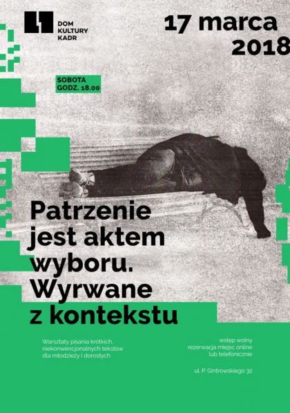 Na realizowany przeze mnie projekt p.t. „Wyrwane z kontekstu” składają się grafiki, rysunki oraz obiekty, suma doświadczeń, w których połączenie oko-dłoń-umysł rejestrują obrazy pamięci, tworzą archeologię opisaną przez Johna Bergera w następujący sposób: Sam akt rysowania zmusza artystę do spojrzenia na przedmiot znajdujący się przed nim, do rozłożenia go za pomocą oka wyobraźni i poskładania na nowo. Jeżeli artysta rysuje z pamięci, akt szkicowania zmusza go do sięgnięcia do własnego umysłu, do odkrycia zawartości magazynu swoich wcześniejszych spostrzeżeń. Wystawa stanowi zapis dekonstrukcji, czy też rozbiór rzeczy zastanych, wykonany za pomocą rysunków, zdjęć i obiektów, przenoszących pewne fakty w nowy wymiar. Obrazy realne pojawiając się często deformują odbiór, tracą wątek poprzez niemożliwość uchwycenia całości. Zarejestrowane fragmenty nakładają się na siebie, kreując każdorazowo nową, jakość. Pojawiają się, symultanicznie tworząc konfiguracje nowych form, nowych wykrojów. Formy, którymi się posługuję, to rozkroje ubrań, rzeczy, które na co dzień postrzegamy, jako całość. Ubrania przynależą do człowieka, noszą go, są jak żywe byty, noszą pamięć obecności człowieka. Ciało rodzi się pomiędzy nimi i umiera w otoczeniu rzeczy. Jean Toussain Desanti twierdził, że to właśnie one wiążą człowieka ze światem. Jednak wyrwane z kontekstu, rozkrojone i zdekompletowane tworzą nową jakość. Złożony obraz, rodzaj mapy, z której możemy odczytywać dowolne znaki.
