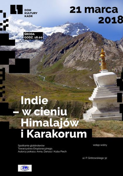 Indie cechuje niezwykła różnorodność ludzi, religii i pejzaży. Kraj jest odwiedzany nie tylko przez podróżników, ale też przez wiele osób poszukujących innego wymiaru życia – duchowego, mistycznego i tych, którzy uciekają od zachodniej cywilizacji. Nam też udało się uciec i zaszyć w trudno dostępnym północnym stanie Dżammu i Kaszmir w cieniu Himalajów i Karakorum, wśród najwyższych gór świata, rozległych dolin i ludzi, którzy mieszkają obok siebie, mówiąc różnymi językami i modląc się do różnych Bogów. Wspólnie odwiedzimy historyczny Tybet Zachodni – średniowieczny Ladakh, który dzisiaj jest miejscem schronienia uciekinierów z Tybetu właściwego i prężnym ośrodkiem buddyzmu w Indiach. Odwiedzimy klasztory i pałace buddyjskie w Dolinie Indusu. Pojedziemy do jednego z najbardziej odległych zakątków Indii – Doliny Nubry u podnóża Karakorum. Wybierzemy się nad wysokogórskie jeziora w poszukiwaniu himalajskich nomadów Changpa i wyznawców buddyjskiej szkoły Drukpa Kagju, która przede wszystkim rozpowszechniła się w Bhutanie i w kilku odległych ośrodkach w Indiach.