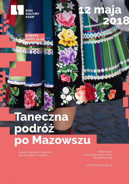 Zapraszamy na wyprawę do centralnej Polski, gdzie królują trójdzielne mazurkowe rytmy. Podczas warsztatów zatańczymy w rytmie oberka, zobaczymy, jak w tańcu wirują spódnice, a może nawet spodnie! Zabawimy się w uciekającą przepiórkę, lisy i kury, wystukamy mazurkowe rytmy.