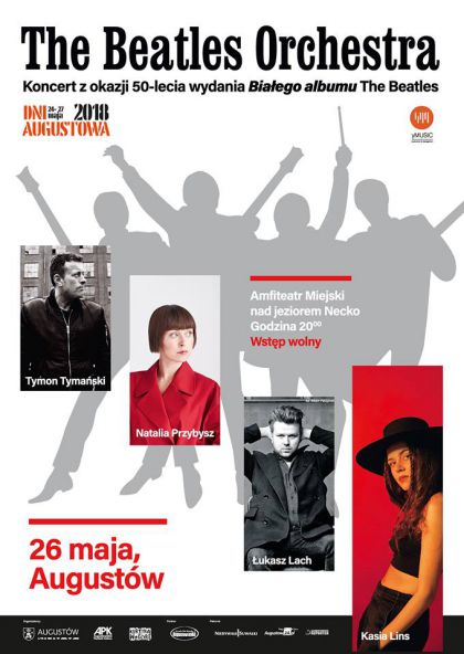 Muzyczną część Dni Augustowa otworzy niezwykły koncert, na który zapraszają Augustowskie Placówki Kultury. 26 maja o godz. 20:00 na scenie Amfiteatru Miejskiego nad Neckiem wybrzmi Projekt Orkiestra „Biały Album”, który powstał z okazji 50-lecia wydania płyty Beatlesów. To autorskie interpretacje utworów legendarnego zespołu The Beatles we współczesnych aranżacjach Tymona Tymańskiego, Natalii Przybysz, Natalii Grosiak i Łukasza Lacha wspólnie nazywanych Orkiestrą. W 2016 r. odbyła się trasa koncertowa Orkiestry promowana przez singiel "Cry, baby, cry". Patronat nad projektem objął Program Trzeci Polskiego Radia wraz z mecenatem dyrektora muzycznego Piotra Metza. Takiego wydarzenia nie wolno przegapić – wstęp wolny.