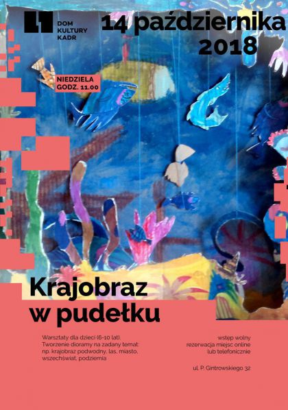 Dla dzieci w wieku 6-10 lat. Tworzenie dioramy na zadany temat: np. krajobraz podwodny, las, miasto, wszechświat, podziemia. Można połączyć tworzenie dioramy z tematem recyklingu i użyć przetwarzalnych materiałów – np. butelek PET na meduzy, pudełek i kartonu na budynki itp.