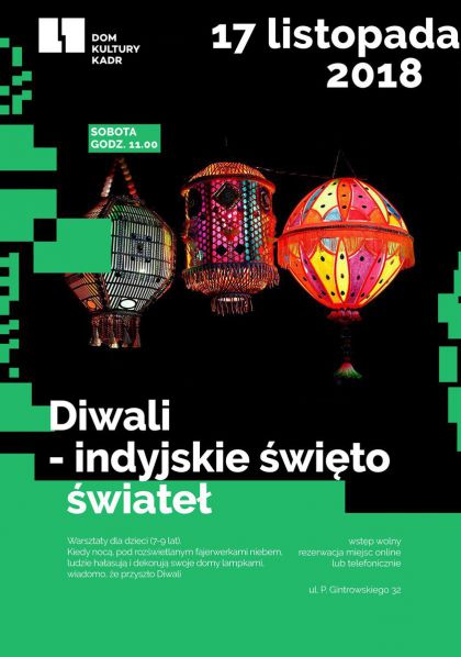 Zapraszamy dzieci (7-9 lat). Kiedy nocą, pod rozświetlanym fajerwerkami niebem, ludzie hałasują i dekorują swoje domy lampkami, wiadomo, że przyszło Diwali. Indusi wymieniają się prezentami ciesząc się, że dobro zwycięża nad złem, a światło nad ciemnością. Na warsztatach poznamy niektóre zwyczaje tego święta, związaną z nim mitologiczną opowieść i zrobimy kolorowe lampiony z bibuły.