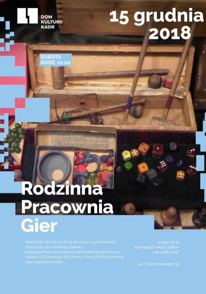 Warsztaty dla dzieci w wieku 6 – 9 lat wraz z opiekunami. Zapraszamy na wyjątkowy cykl zajęć międzypokoleniowych, gdzie wspólnie poznamy i wykonamy gry i zabawki z różnych zakątków świata. Własnoręcznie wykonamy np. zestawy do gry w Mollky, Kubba, Mankalę, podwórkowe bączki lub zestaw do Kippy. Przy okazji poznamy i przyjrzymy się nie tylko zwyczajom i tradycjom z całego świata, ale również wykorzystamy wiele naturalnych i recyklingowych materiałów. Będziemy pracować m.in. gliną, drewnem i wikliną, ale również rzeczami, które, na co dzień lądują w naszym koszu. Razem polepimy, popiłujemy, poszyjemy i pomalujemy. Inspiracją dla nas będą gwarne podwórka przedwojennej Warszawy, zabawy z Dalekiego Wschodu, czy Ameryki Południowej i gry skandynawskie.
