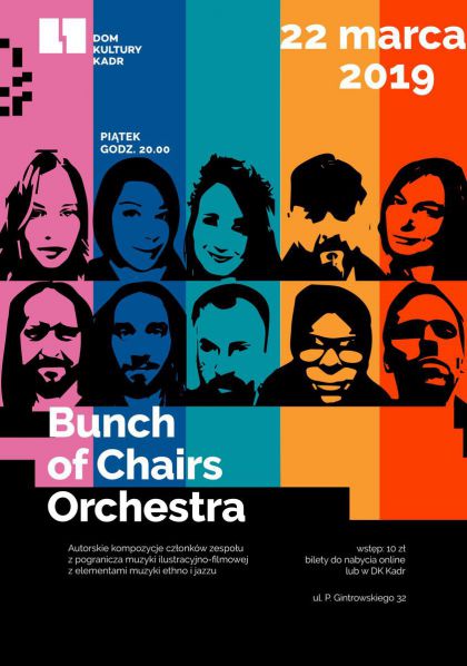 Bunch of Chairs Orchestra powstała z inicjatywy muzyków tworzących projekt “Colours of the World” w ramach “3275kg Orchestra” pragnących kontynuować działalność, jako niezależna formacja. Muzyka Bunch of Chairs to autorskie kompozycje członków zespołu z pogranicza muzyki ilustracyjno-filmowej z elementami muzyki ethno i jazzu. Muzycy tworzący Orkiestrę mają na koncie wiele koncertów oraz nagrania albumów z gwiazdami muzyki klasycznej, rozrywkowej czy jazzu.