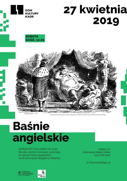 Czytanie starych baśni angielskich to spotkanie z innymi kulturami. To wejście w świat pełen skrzatów, wróżek i mówiących zwierząt. To też możliwość rozmów o wartościach uniwersalnych i relacjach między ludźmi. A czy niektóre opowieści nie zabrzmią może znajomo? Zainspirowani pięknymi drzeworytami Bogdana Zieleńca stworzymy własne, pełne kolorów ilustracje do wysłuchanych historii.